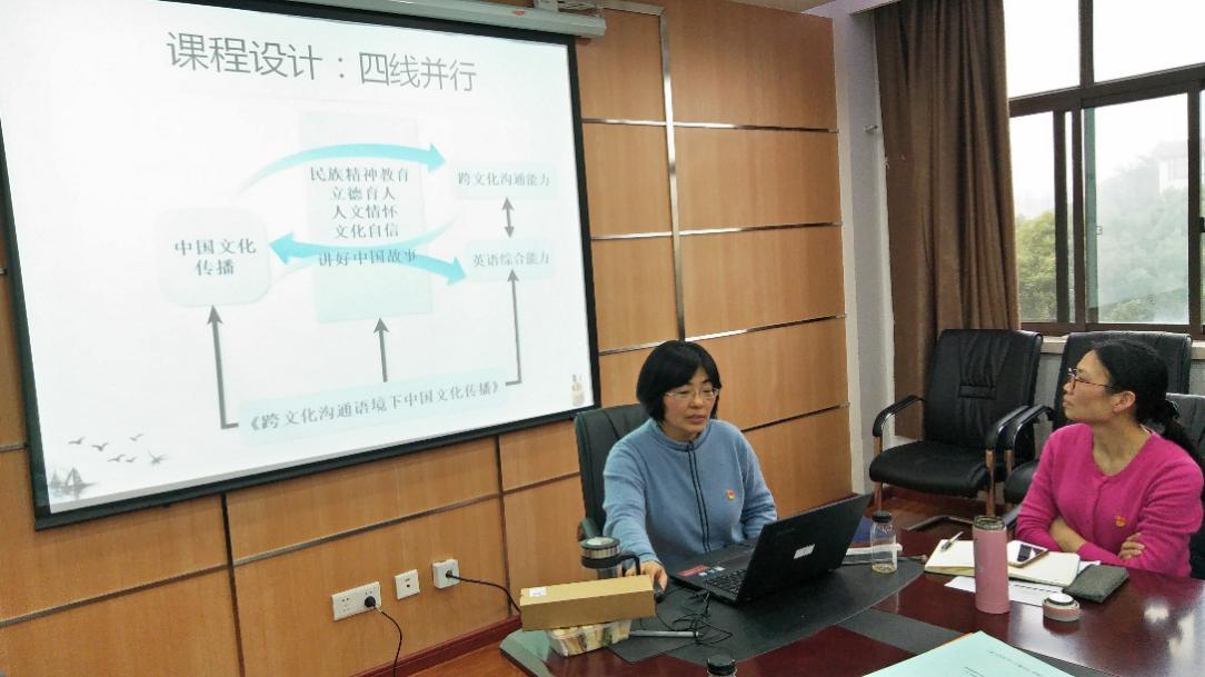 接下来,陈夏芳老师分享了其《跨文化沟通语境下的中国文化传播》课程思政示范项目建设经验。陈老师重点介绍了其课程思政元素的构成及教学设计理念,以及学校对课程思政示范项目建设的要求,分享了其建设和结项的宝贵经验。