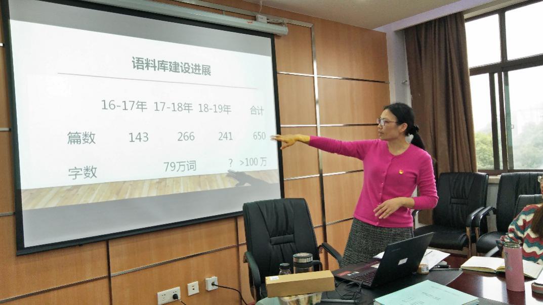 紧接着,黄瑞红老师作了题为“财大学习者语料库建设和应用”的报告。黄老师介绍了参与语料收集的老师、语料库建设进展和意义,通过对写作语料库语言使用现象的分析,将对今后学术写作教学具有一定的指导意义,并欢迎老师们使用财大学习者语料库,用于科研和教学。