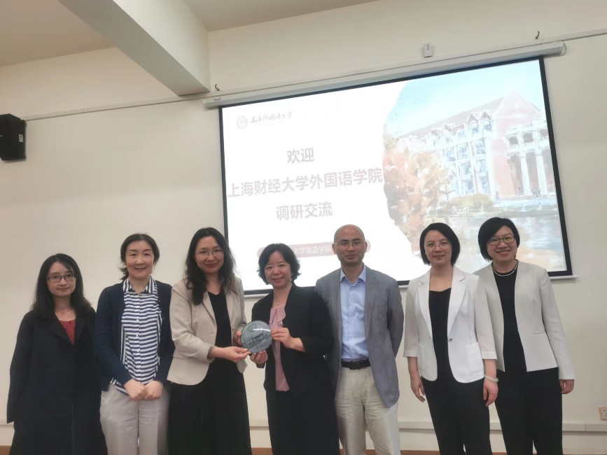 为推动学习贯彻习近平新时代中国特色社会主义思想主题教育走深走实,贯彻落实习近平总书记关于大兴调查研究之风的重要指示精神,5月24日下午,我院院长赵珂教授、副院长杨国静教授、文学方向骨干教师王玮副教授、丁冬副教授以及科研秘书兰巧珍一行五人赴上海外国语大学英语学院调研学习。上海外国语大学英语学院院长王欣教授、副院长孙会军教授、副院长孙珊珊副教授以及程心教授热心接待了学院一行。