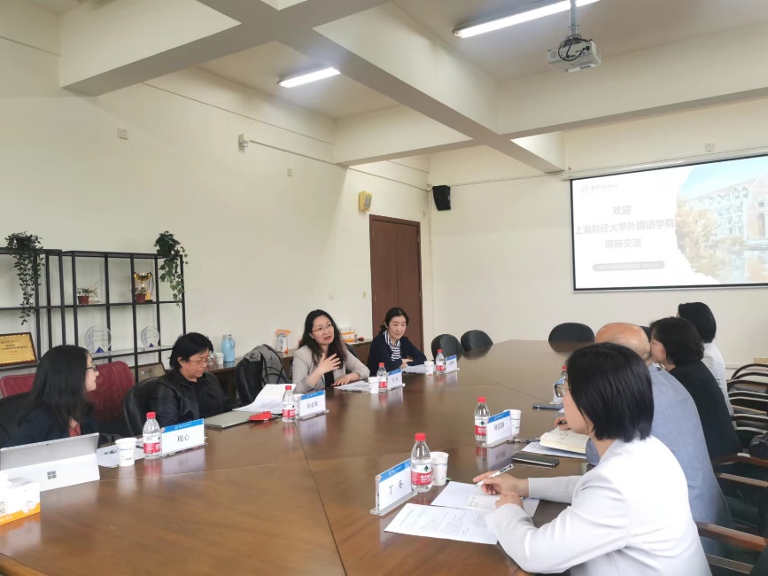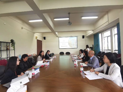 调研期间,王欣院长表示热烈的欢迎,她从学院科研教学机构、师资队伍、期刊认定、学科方向设置、配套机制等方面进行详细的介绍。她表示,外语学科应在守正的基础上,融合学校优势,凝练学科特色,夯实外语学科的内涵建设和创新性可持续发展。孙会军副院长和孙珊珊副院长分别介绍了研究生导师管理情况和本科一流专业建设与文学课程设置。程心教授分享了学院学术沙龙机制和一流课程申报建设心得。