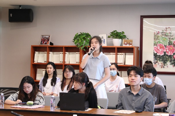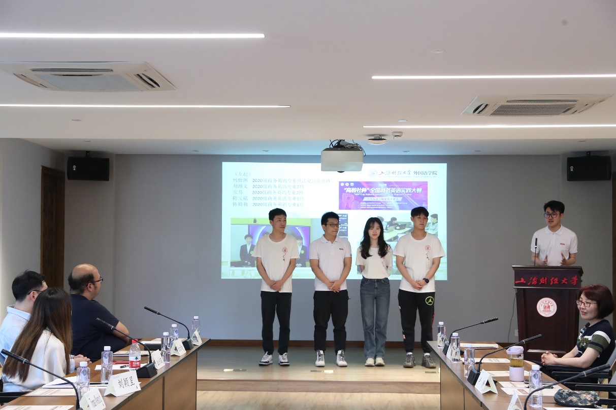 外国语学院程倩博士带领2020级商务英语专业胡瀚文、陈又铭、陈婍莉、安易、杨骏洲同学组成的“数字赋能、智慧商务”Alpha 团队作为商务实践大赛组代表做汇报。作为2022年“高教社杯”全国商务英语实践大赛全国总冠军,他们详细回顾了参赛历程和实践项目。项目以扎根并拓展非洲市场的上海同美企业发展有限公司为目标企业,形成了一套元宇宙赋能方案,不仅助力同美公司加强企业内部人力资源管理及培训,也关注传统企业的数字化转型,破解一带一路背景下中小企业走出去的发展困境,促进海外中国企业间的合作共赢。