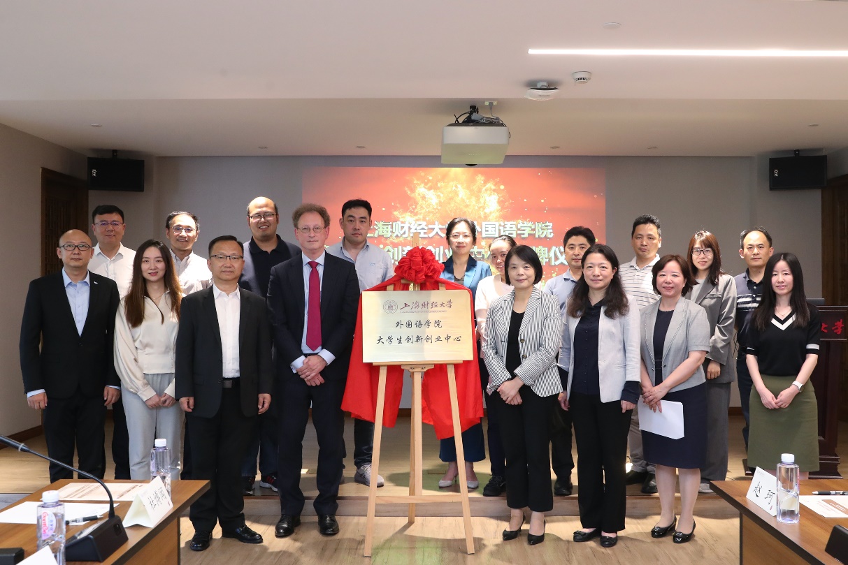 在郑樑副会长、赵珂院长和蒋萍书记的共同见证下,Thomas Wienold副总裁和姚玲珍副校长共同为上海财经大学外国语学院大学生创新创业中心揭牌。