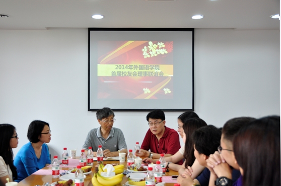 2014年6月7日,外国语学院(筹)校友会首届理事会第一次全体会议在红瓦楼606会议室举行,外国语学院院长吕世生、书记陈红梅、前系主任王晓群、合作发展处副处长张彦波出席本次会议,外国语学院学生会主席团、外联部部长也列席了本次会议。原外语系2010届毕业生、理事会秘书长孙涛主持会议。