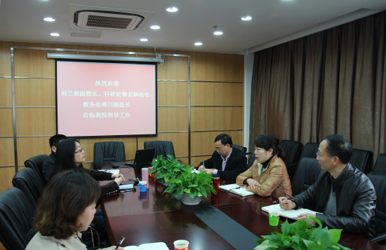 2014年11月28日,上海财经大学副校长刘兰娟教授、科研处处长徐龙炳教授、教务处傅川副处长一行莅临外国语学院,重点就大学外语教学、实验室建设、实践教学等方面进行调研并指导工作。外国语学院党总支书记陈红梅副教授、副院长赵珂副教授、副院长李锋副教授及部分科研教学骨干教师出席了调研工作会议。