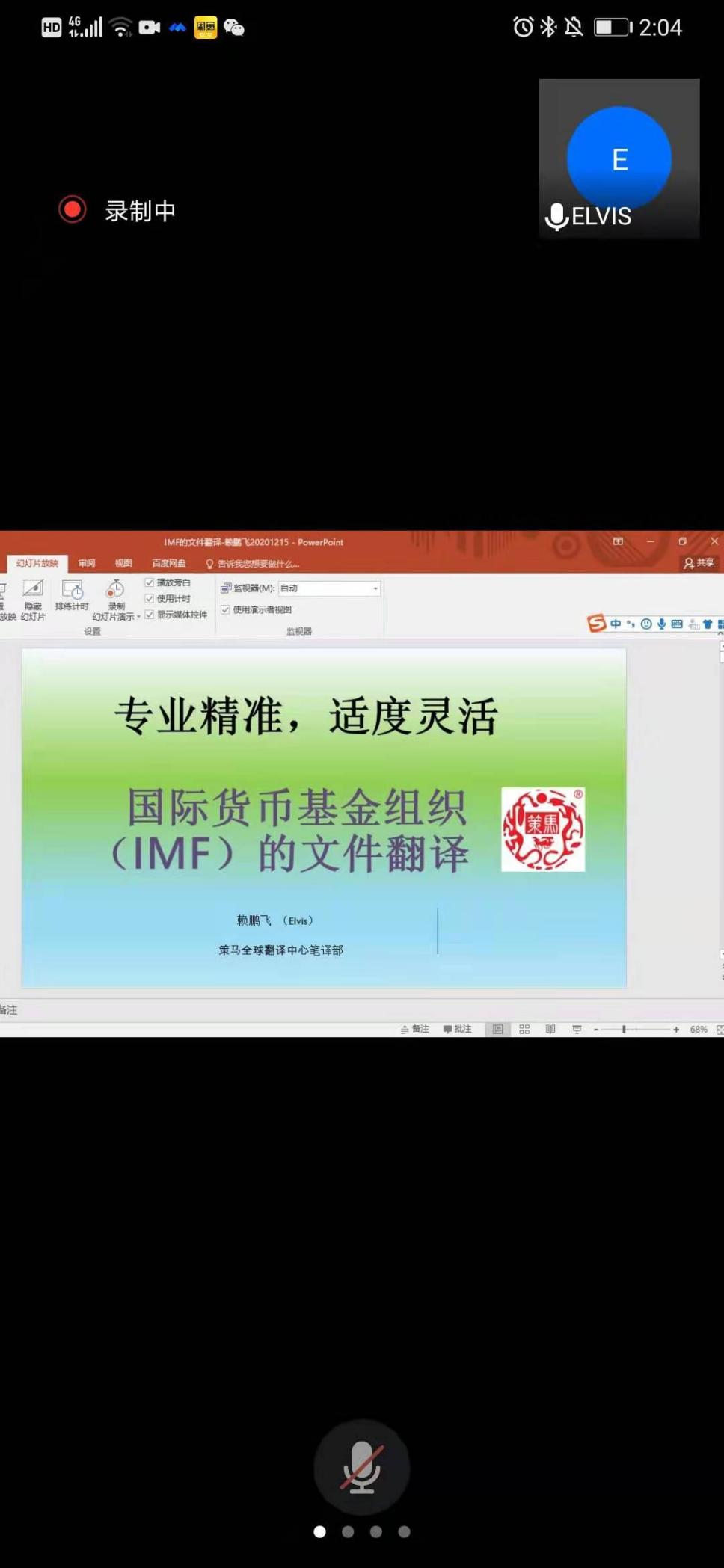 2020年12月15日下午,外国语学院第三期财经翻译沙龙于腾讯会议线上开展。策马全球翻译中心副总监、策马国际组织文件翻译组副组长赖鹏飞老师作了“国际货币基金组织(IMF)的文件翻译——专业精准、适度灵活”的专题讲座,策马Linda老师主持了该场讲座。MTI专业师生共同参与了本次翻译沙龙活动。