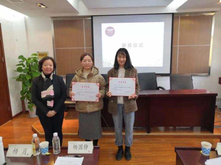 经过紧张激烈的角逐,根据现场评委的评分与首轮论文评阅得分加权得出总分,决赛最终评出一等奖2人(张扬、张金梅)、二等奖3人(赵宇祺、彭芃、吴睿琦)、三等奖3人(王梦璐、黄文静、陈艳)。外国语学院副院长赵珂老师为获奖学生颁发了奖状,并与参赛选手合影留念。赵珂老师对获奖选手表示热烈的祝贺,对各位评委老师在百忙之中参与本次活动表示衷心的感谢。同时,也对同学们提出了希冀和期待,希望同学们在学期间努力做到三个“一”(参加一次国际会议、发表一篇文章、参与一项课题研究),发觉自己的研究兴趣以及对科学研究的热情。