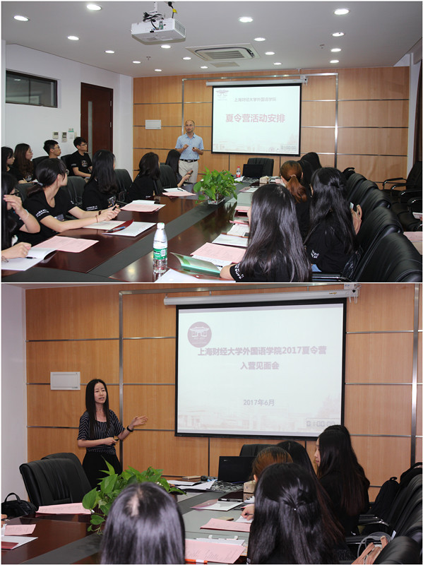 6月29日上午,“2017上财外语暑期夏令营”开营仪式在红瓦楼626会议室隆重举行。上海财经大学研究生院常务副院长徐龙炳教授、赫尔辛基大学Fred Dervin教授、外国语学院党总支书记蒋萍老师、副院长赵珂教授、副院长李金满教授、院长助理杨国静副教授、院长助理吕雷宁副教授、教师代表程倩和郭靓老师出席了开营仪式。副院长赵珂教授主持开营仪式并致开场辞。