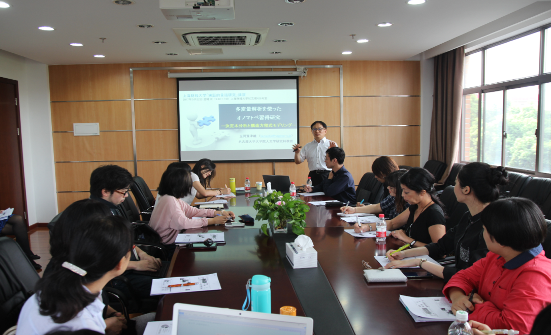 本次讲座围绕如何使用高阶统计方法对理论进行实证性验证展开,除了我院师生,还吸引了来自复旦大学、上海外国语大学、上海海洋大学、海事大学、上海大学、第二工业大学等兄弟院校不同领域的众多师生。讲座以日语进行,我院穆欣博士现场为讲座进行了中日交替翻译。在为时90分钟的详实解说后,玉冈教授与师生们进行了热烈的讨论。讨论内容涉及到“实验结果能否进行一般化”、“统计方法的具体细节”、“统计分析软件的相关信息”、“实验所需样本数”等诸多问题。