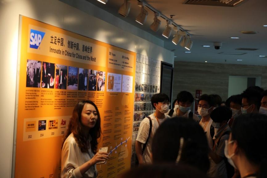 为庆祝中国共产党成立100周年,深入推进党史学习教育,5月25日,外国语学院师生党支部成员、2020级商务外语专业本科生及教师代表一行70余人在支部书记、副院长赵珂教授的带领下,共同走进上海浦东软件园SAP中国研究院开展党团联建活动。此次活动通过实地参观、企业发展讲解、设计思维工作坊等环节,营造一堂生动的沉浸式体验式党史学习教育课,引导师生在实践体验中学习外资企业在华发展历程以及中国在国际市场中的开放包容与积极意义,深入感悟改革开放史和社会主义发展史,践悟新时代责任担当。