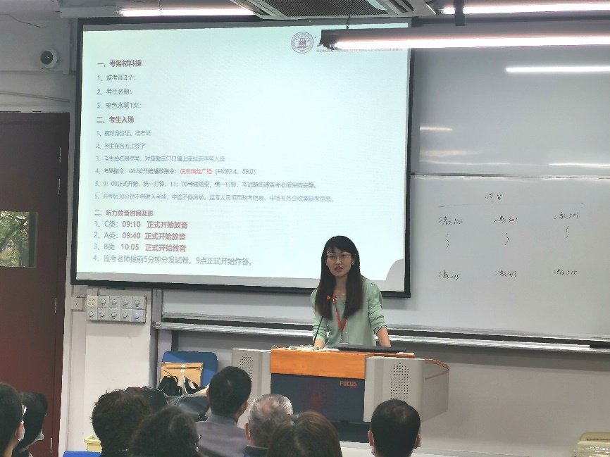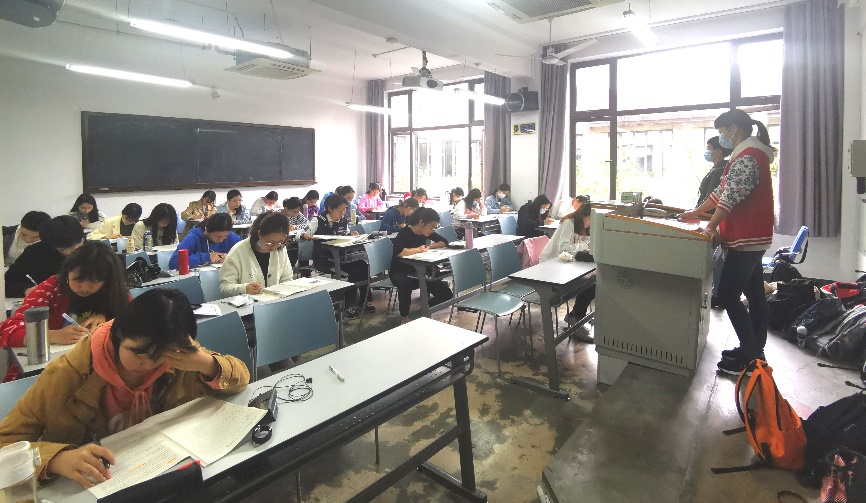 我校外国语学院已多年承办全国大学生英语竞赛,考务组织经验丰富,在工作人员通力协作下,我校初赛组织工作开展有条不紊。今年我校报名人数达1400余人,含A、B、C三个类别,分布于国定路校区第二教学楼43个考场内。开考前,外国语学院考务工作组举行了教师考务培训,严格规范主/监考职责和考务要求。考试期间各考场管理规范、秩序井然,竞赛顺利进行。
