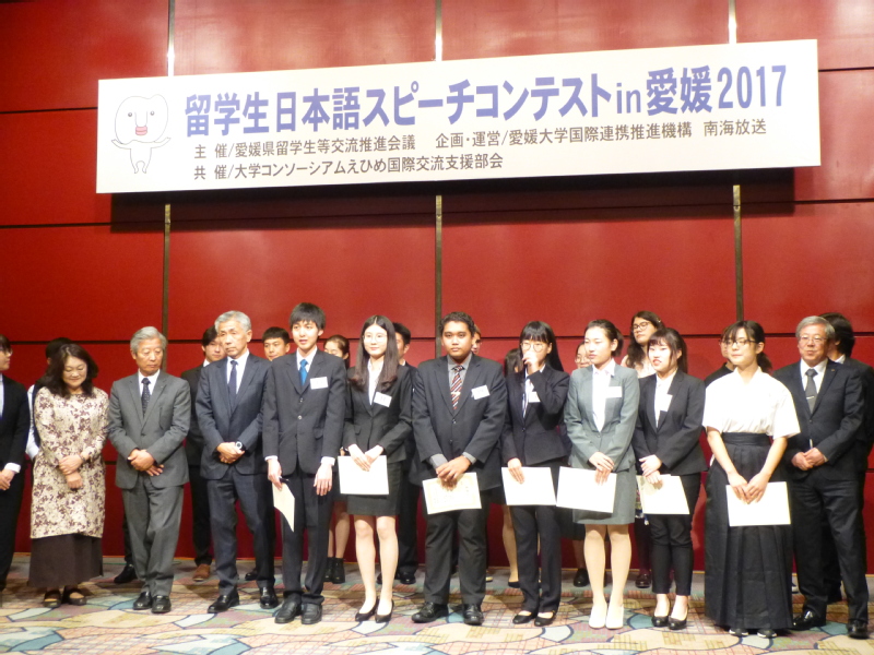 本次大赛由爱媛县留学生交流促进会、日本大学协会爱媛县国际交流部联合主办,爱媛大学国际联合部门协办。经过层层选拔,共有来自爱媛大学、松山大学、松山东云大学等7所高校的19名留学生进入决赛。