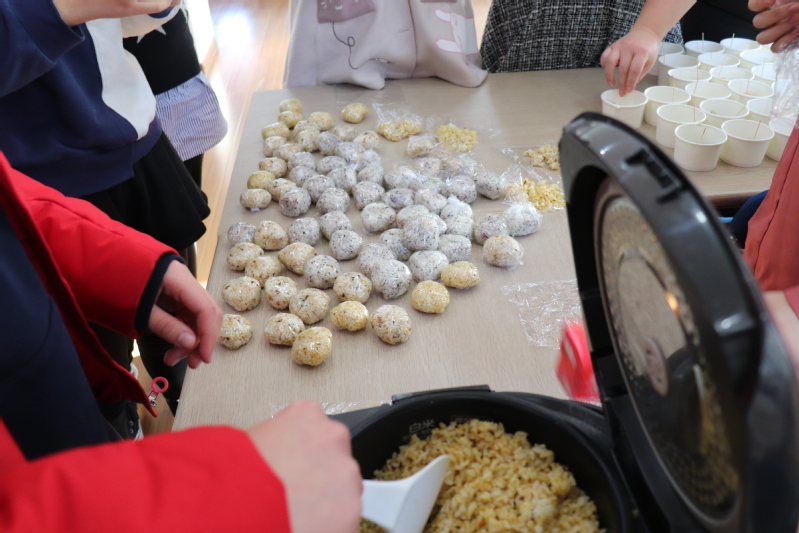 在日本饮食文化介绍中,日本留学生会的同学为大家带来了他们精心准备的饭团、味增汤、抹茶团子等具有日本特色的家常料理。提到日本料理,许多人会联想到寿司、生鱼片,或是摆设精致犹如艺术的怀石料理,但最能贴近日本人生活的还是这些家常料理。热乎乎的饭团和味增汤、精致的抹茶团子,往往能够让人感受到人与人之间最朴素温暖的真情。