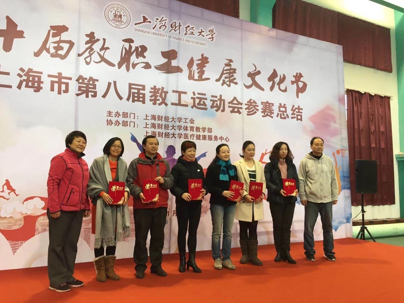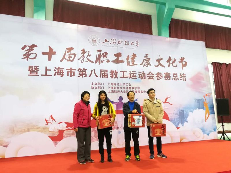 2018年1月16日下午,上财教职工第十届健康文化节活动于武川羽毛球馆举行。我院工会主席龙菡老师荣获2017年度优秀干部荣誉称号并上台领奖。十余位老师积极参与健康文化节各类活动,其中包括健康知识问答、红十字会心肺复苏练习、趣味单项和团体比赛。