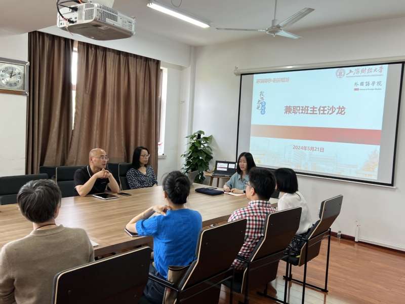 为了进一步落实习近平总书记对做好大学生思想政治教育工作的要求,加强对2022、2023级本科生的教育管理力量,促进兼职班主任队伍建设,2024年5月21日中午,上海财经大学外国语学院“我与书记面对面”系列活动之2023-2024学年第二学期第二次兼职班主任工作沙龙在红瓦楼408会议室举办。外国语学院党委副书记赵蔚,2022、2023级全体兼职班主任老师,辅导员孟真、李俊芳共同参加了本次沙龙。会议由赵蔚老师主持。