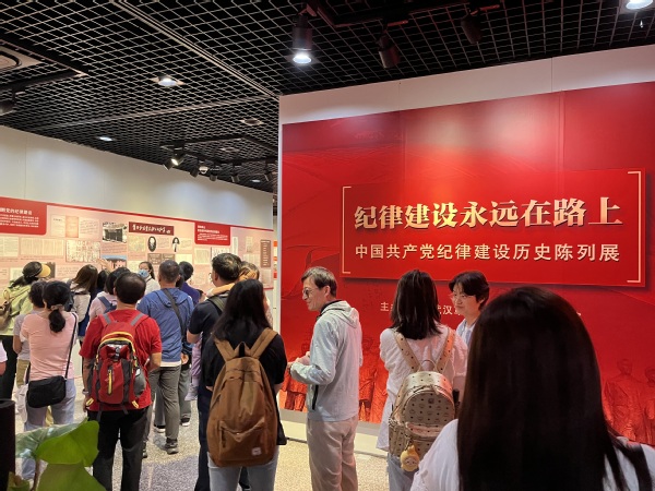随后师生在讲解员的带领下参观了“纪律建设永远在路上——中国共产党纪律建设历史陈列展”,该展出是国内首个全面反映党的纪律建设历程的专题展,分为“创立与探索”“推进与曲折”“恢复与发展”“新时代 新征程”四个部分,系统梳理了中国共产党纪律建设的历程,全面、客观、真实反映了中国共产党在不同历史时期的纪律建设理念、战略方针及主要成果,梳理了中国共产党成立至今在纪律建设史上的50余个“第一次”,全面展示了党监督执纪的伟大足迹。同时也用生动的图文资料展现了毛泽东、周恩来、刘少奇、朱德、陈云等老一辈无产阶级革命家廉洁自律、克己奉公的优秀品质和工作作风。