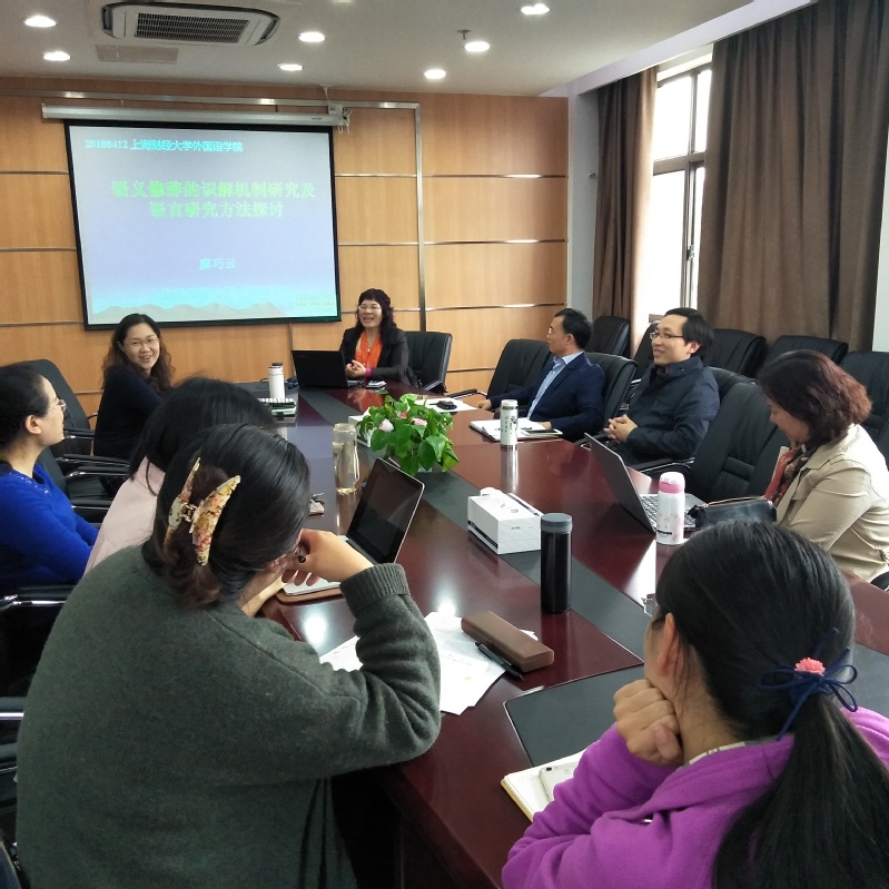 2018年4月12日下午,上海外国语大学英语学院廖巧云教授应我院现代语言研究中心邀请,在上海财经大学红瓦楼426室做了一场题为“语义修辞的识解机制研究及语言研究方法探讨”的精彩讲座。