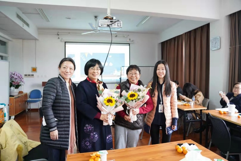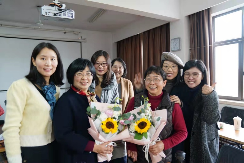会议气氛温馨而热烈,会后老师们向陈老师和蒋老师献花、送上祝福,并合影留念。