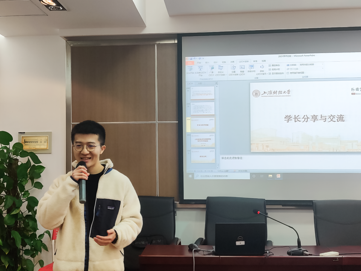 此外,本次论坛还邀请了已有论文发表经验的2020级英语笔译专业的刘思远同学前来交流。他向同学们分享了论文撰写与学术实践经验,从研究对象、研究工具和研究方法三方面进行阐述,既要放眼星空又要脚踏实地。除了学术论文,思远同学还分享了工作与求职的经验,三个关键词分别是“靠谱”、“认真”与“沟通”。