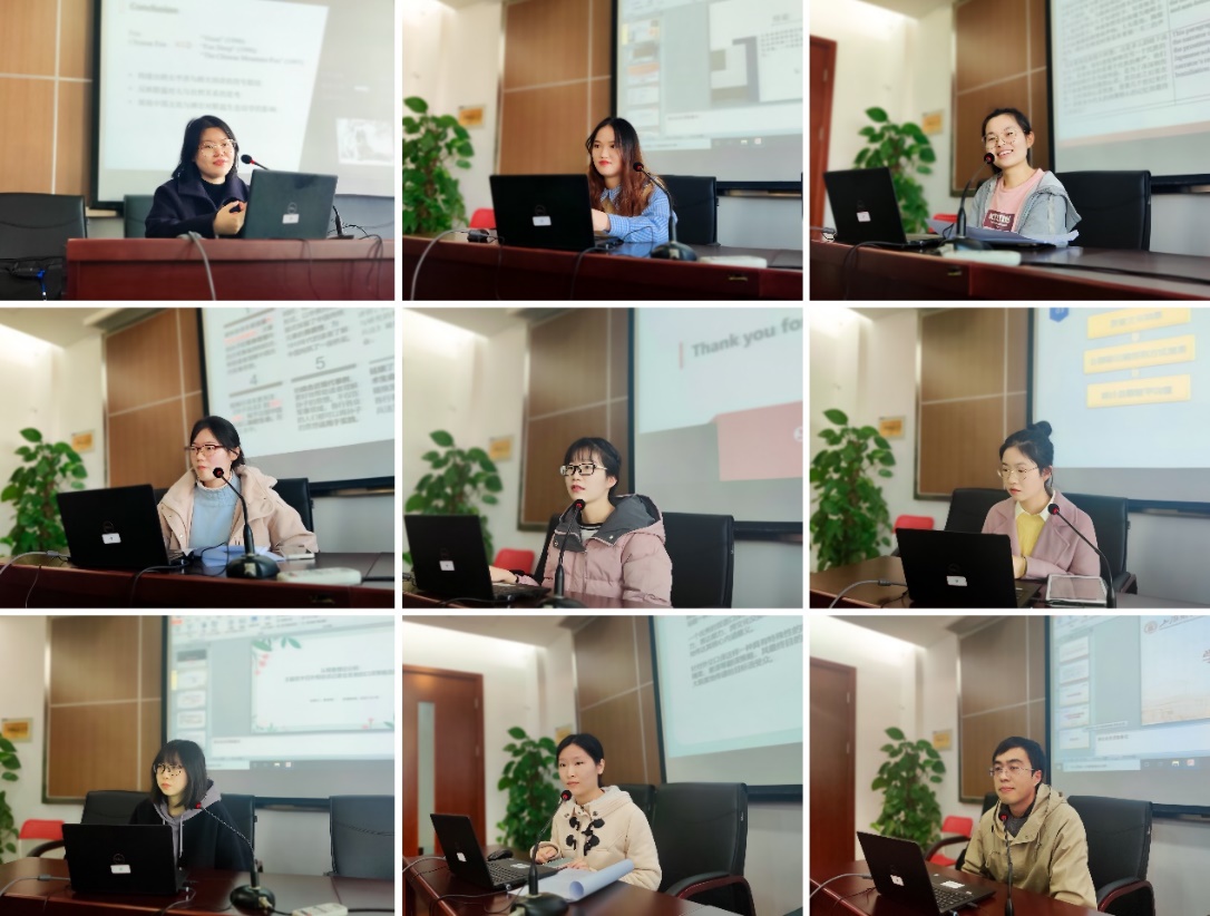 接下来比赛正式开始,入围决赛的9位2020级研究生分别来自英语语言文学、外国语言学及应用语言学、翻译学以及日语语言文学专业,他们依次进行了论文汇报展示及答辩。每位同学汇报展示后,评委老师进行提问,并在学术交流中对每位选手的论文提出了建设性的意见和建议。在场的观众同学也踊跃提出想法和疑问,论坛答辩现场的互动氛围十分热烈。