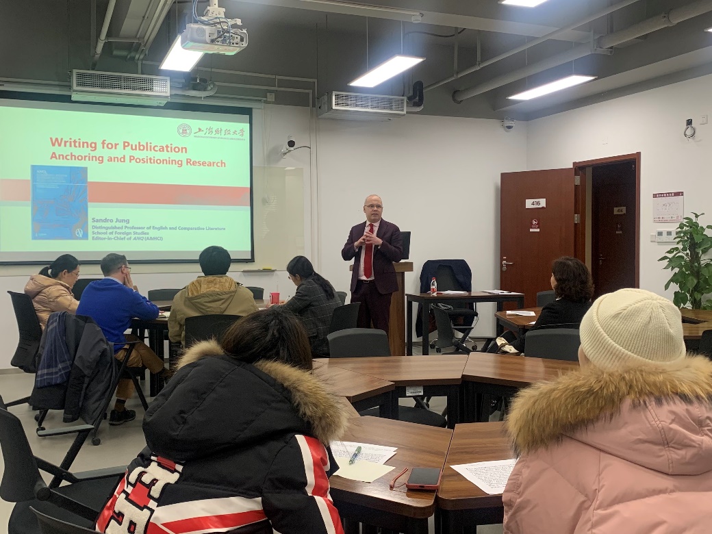 期刊主编写作漫谈工作坊由国际A&HCI期刊ANQ主编、外国语学院资深教授Sandro Jung主讲专题讲座“Writing for Publication: Anchoring and Positioning Research”。讲座从论文选题出发,强调研究定位和写作策略的重要性;从主编视角解释了思辨论文的主要特征,并通过四个实例详细讲解研究者如何明确研究立场的写作策略。