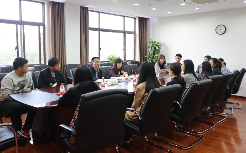 最后,在学生座谈会环节,余教授与学院十二位本科生代表就人才培养方案设置、个人专业课程学习、实习实践活动和论文写作等方面进行了座谈。