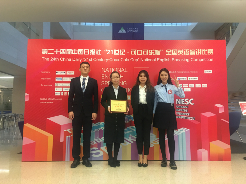 2018年第二十四届“21世纪杯”全国英语演讲比赛上海赛区决赛于12月1日在昆山杜克大学落下帷幕。由我校英语系副教授刘宝权老师指导的五位选手获得了优异的成绩。其中张弛同学(2016国际金融法)以优异成绩进入最后一轮,斩获上海赛区特等奖,将代表上海赛区参加全国总决赛。盛楚怡同学(2018商务英语)荣获一等奖,高健(2017商务英语)、陈璐(2016信息管理)、王宇飞(2017商务英语)获得二等奖。鉴于选手们的优秀表现,上海财经大学获得比赛最佳组织奖。