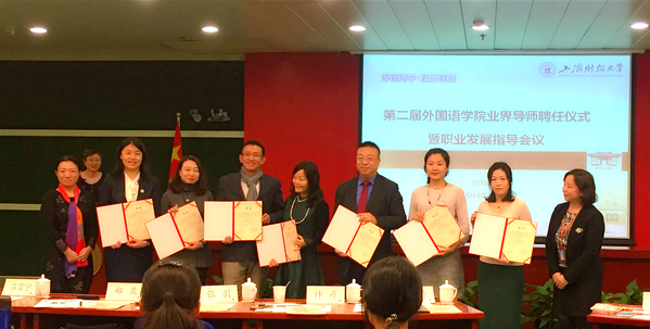 3月23日下午,第二届外国语学院业界导师聘任仪式暨职业发展指导会议在行政大楼一楼报告厅举行。本次仪式正式聘任来自汇丰银行、瑞穗银行、桑坦德银行、平安银行、德国思爱普公司、美世保险经纪公司、普华永道中天会计师事务所等企业的10位业界导师,进一步强化我院“双师型”师资队伍。外国语学院党总支书记蒋萍、副院长赵珂以及我院师生代表近百人参加了本次会议,我院英语系主任孙艳主持会议。