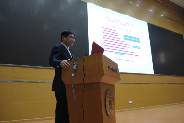 讲座中,马利中教授首先从概念切入,通过图文并茂的形式对“老龄化社会”和“老龄社会”进行了定义,对日本、中国和欧美各国的老龄化程度做了横向比较,指出日本已经进入超老龄社会,而中国正在逐渐进入老龄社会。接着,马教授对日本少子老龄化的社会现状以及形成的原因做了详细解读。在解读时,马教授使用了大量图片和数据,同时借用反映日本社会现象的新词汇,例如,“人口急減”、“東京一極集中”、“団塊の世代”(战后婴儿潮出生的一代)、“下流老人”(生活质量处于社会底层的老人)、“草食男”(恋爱、结婚兴趣不高的男性)、“肉食女子”(事业和感情上比较强势的女性)、“負け犬”(剩女)“いくめん”(奶爸)等,生动有趣地勾勒出日本老龄社会的现实情况,鲜明易懂地分析了导致日本少子老龄问题的多种社会原因。在对日本少子老龄化社会的现状和形成原因进行分析之后,马教授考察了日本少子老龄化问题对社会造成的具体影响,如导致经济增长放缓,劳动力人口负担加重等。最后,马教授介绍了日本在应对少子老龄化问题的政府举措,并具体分析了这些政策在中国实施的可行性。令广大师生受益匪浅。