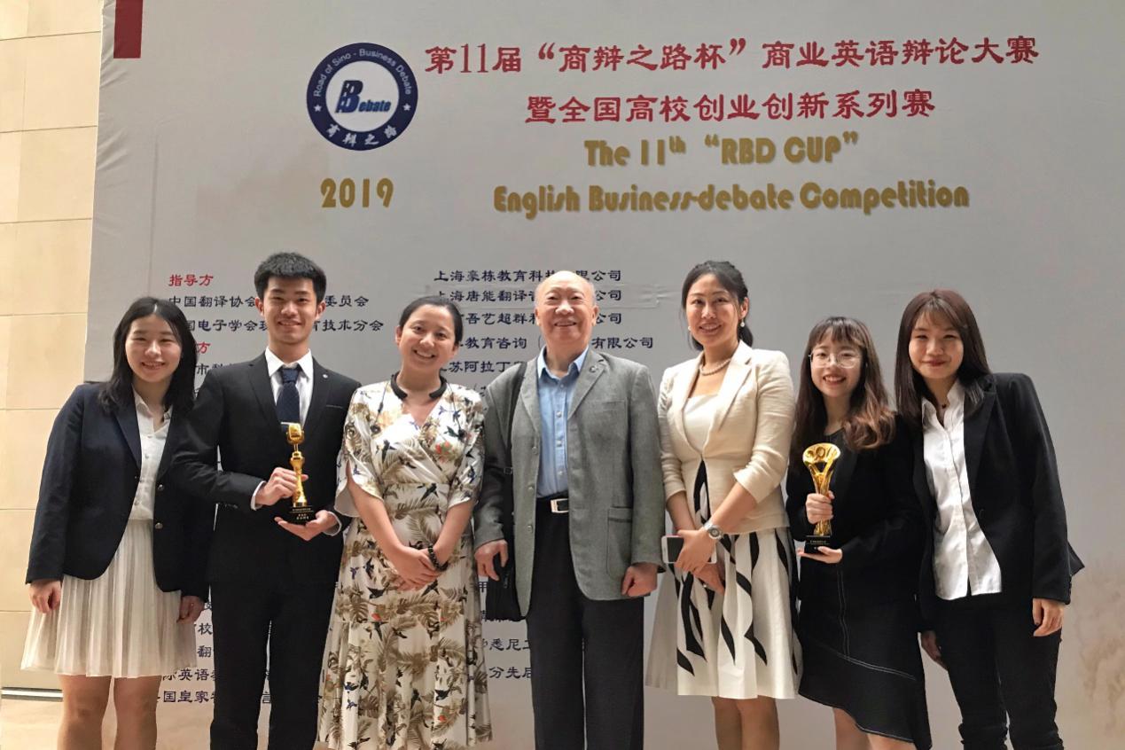 5月19日,第十一届“商辩之路杯”商业英语辩论大赛暨 2019年全国高校创新创业系列赛全国总决赛在中国科学院上海分院圆满落幕。该赛事由上海市科技翻译学会、江苏省科技翻译工作者学会、国家技术转移东部中心和中国高校(华东)科技成果转化中心联合主办,属于全国赛事。我校外国语学院商务英语专业学生陈朝洋、黄静、孔小鹏、徐琪珂组成的“Attention, Please(红日)”代表队在指导老师程倩、常姗姗的精心指导下以优异的表现斩获全国总冠军,孔小鹏同学获得“最佳辩手”殊荣。