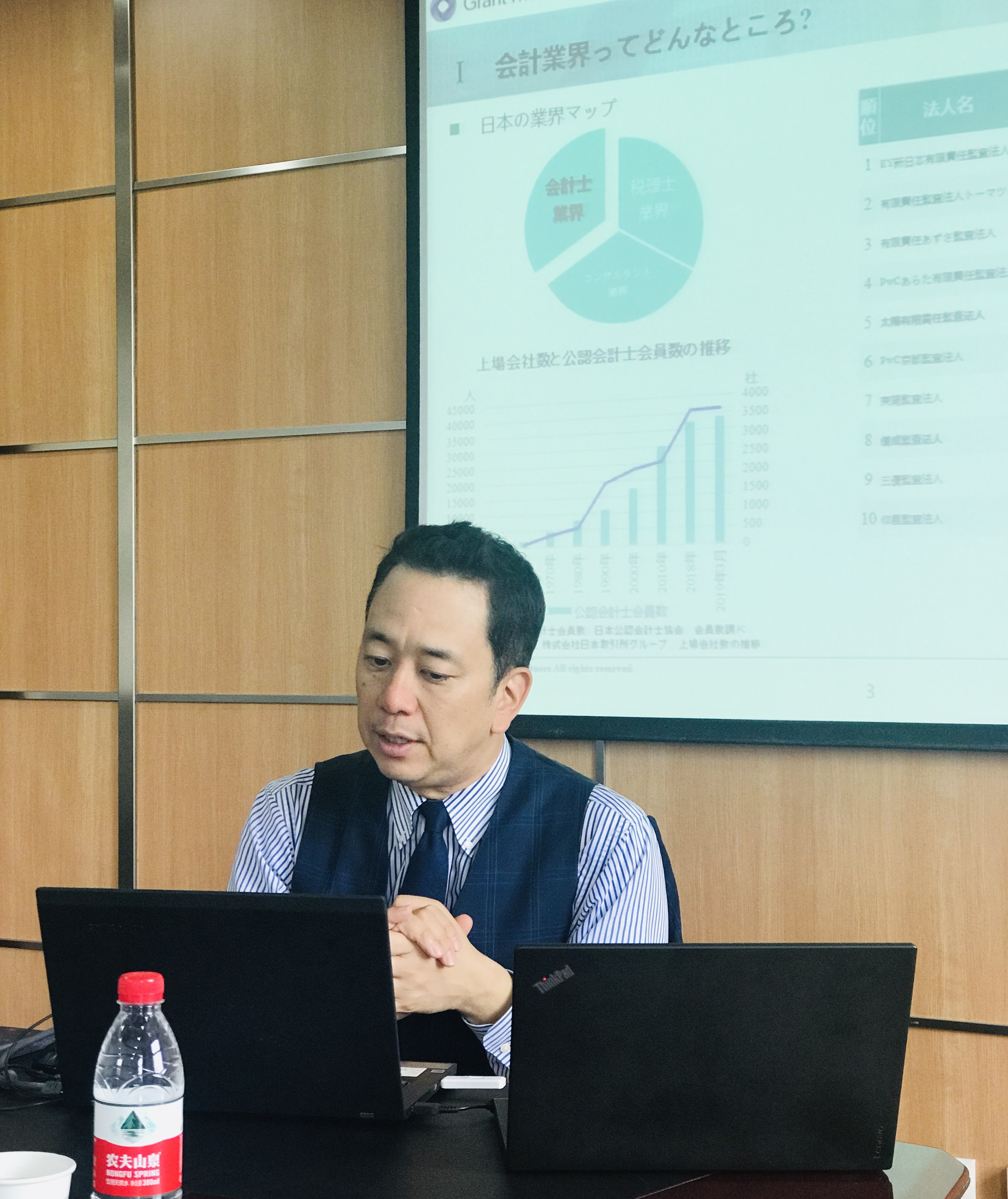 5月17日下午,我院业界导师春田宪重聘任仪式暨“だから、会計業界はおもしろい!”讲座于红瓦楼426会议室顺利举行。本次仪式正式聘任税理士法人山田&Partners企业合伙人、海外业务总部长、名古屋事务所所长、亚玛达商务咨询(上海)有限公司总经理春田宪重为我院业界导师,进一步强化我院“双师型”师资队伍。会上,春田宪重做了一场题为“だから、会計業界はおもしろい!”的精彩演讲,吸引了我校数十位师生参会。
