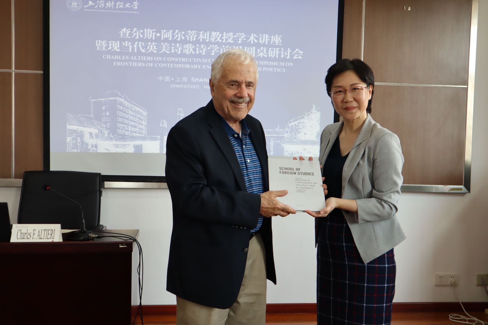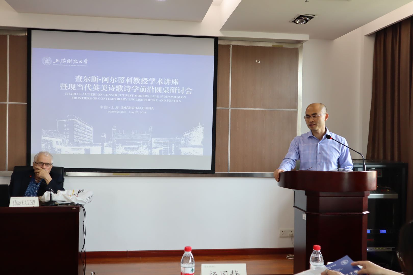 2019年5月25日,查尔斯·阿尔蒂利学术讲座暨现当代诗歌诗学前沿圆桌研讨会在我院626会议室成功举办。当代英语诗歌诗学研究领域的泰斗、美国艺术与人文学院院士、加州大学伯克利分校英语系讲席教授查尔斯·阿尔蒂利教授,北京外国语大学英语学院院长张剑教授,北京联合大学应用文理学院英语语言文学学科带头人、科研处处长黄宗英教授,杭州师范大学外国语学院院长欧荣教授,广西民族大学外国语学院外国文学学科带头人张跃军教授,上海财经大学外国语学院讲席教授、加里·斯奈德国际研究中心主任谭琼琳教授,上海财经大学外国语学院特任研究院杨国静副教授受邀作了主旨报告,围绕现当代英美诗歌、诗学研究前沿和发展方向等主题展开了深入的讨论。来自北京外国语大学、南京大学、华东师范大学、西安外国语大学、西南大学、湖南大学、上海外国语大学、复旦大学等近30所高校的50余名师生参加了本次研讨会。