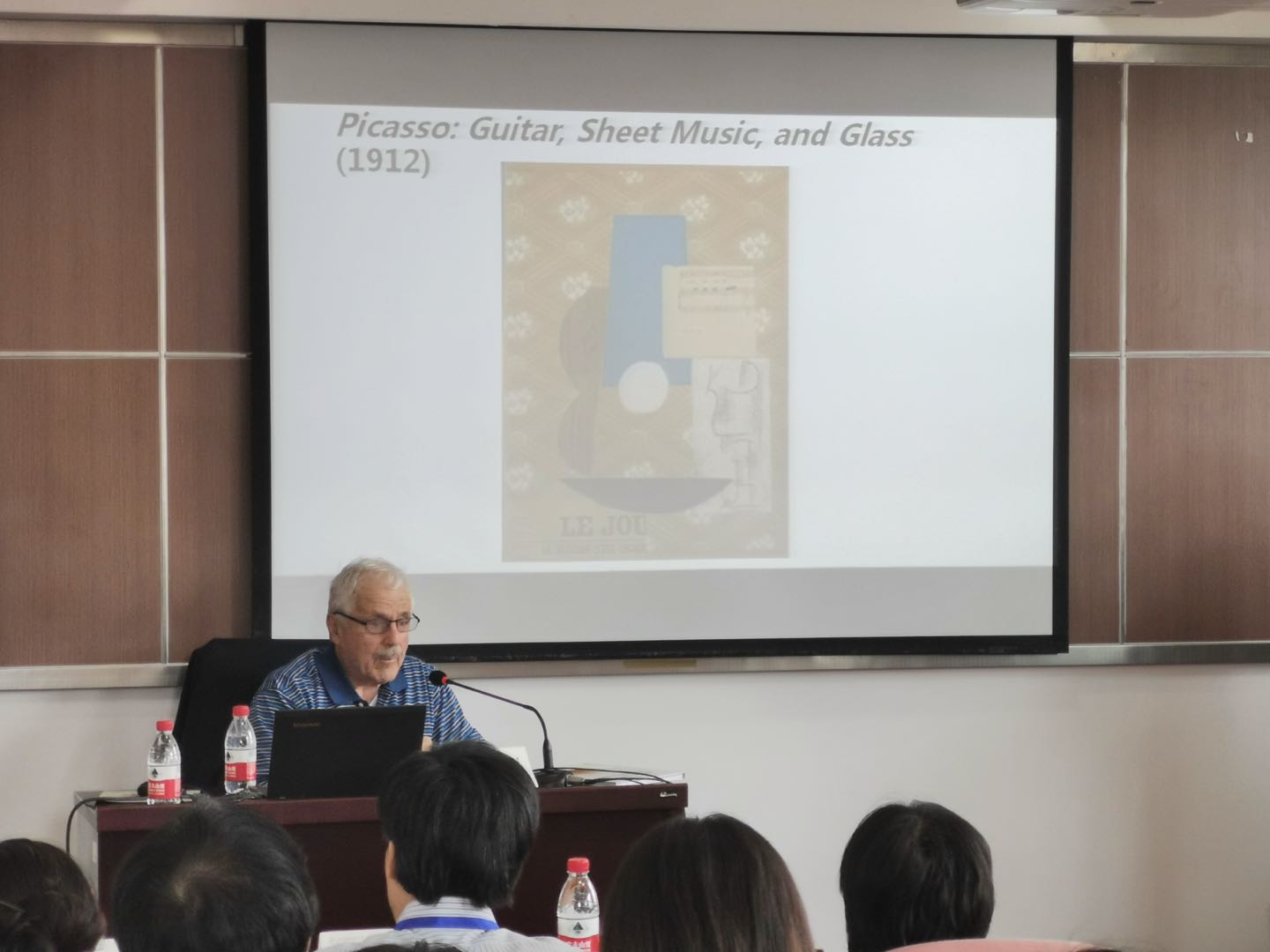 随后,阿尔蒂利教授作了题为“为何建构主义现代主义依然重要?”的学术讲座,我院特任研究员杨国静副教授主持。阿尔蒂利教授主要围绕建构主义现代主义在绘画和诗学当中关于自然、美学、感知、自我、意识等一系列哲学话题进行展开,深入探讨了艺术建构的哲学命题。阿尔蒂利教授首先通过几幅印象派、立体派名画的欣赏,逐渐过渡到对于当代诗歌的解读。他认为绘画和诗歌作品不仅是创作者主观能动性的运作结果,同时也是审美对象的物质性与审美主体意识相结合的生成性事件,主体意识的参与一直是艺术性生成过程中的构成性因素。阿尔蒂利教授认为,建构主义艺术生成观植根于黑格尔的辨证主义哲学,特别是其关于物质与精神、主体与客体辩证关系的理解。他指出,相对于新物质主义对主体能动性的单纯强调,黑格尔对物与思辨证关系的深刻理解可能为理解现代主义诗歌和艺术提供了一个更具阐释力的哲学视角。