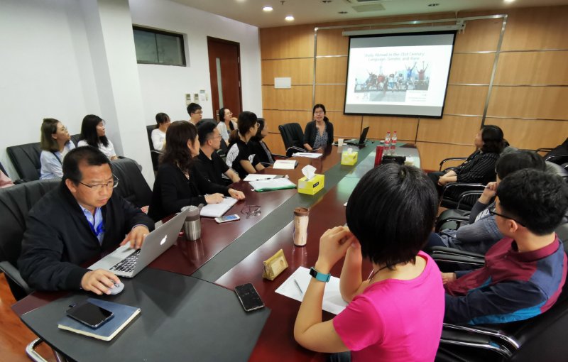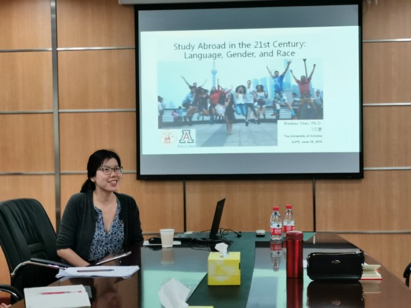 6月18日下午,美国亚利桑那大学刁文豪教授应邀来我院作了一场题为“Study Abroad in the 21st Century: Language, Gender, and Race”的精彩学术报告。我院副院长、上海财经大学-赫尔辛基大学联合跨文化研究中心主任赵珂教授,来自兄弟院校和我院的20余位师生参加了本次学术报告。赵珂教授主持讲座。