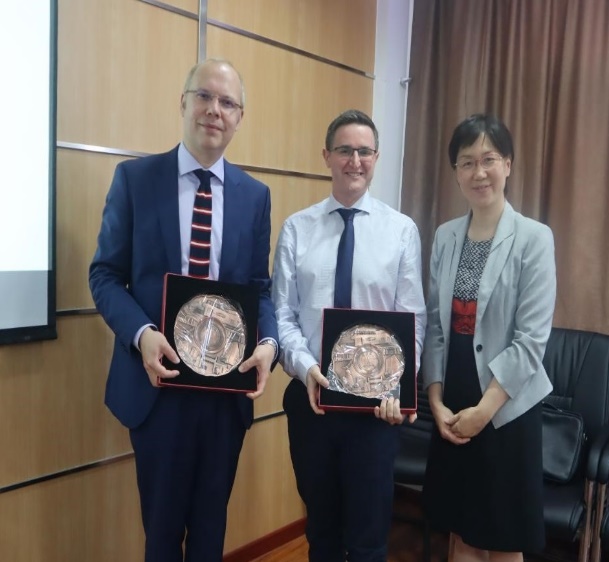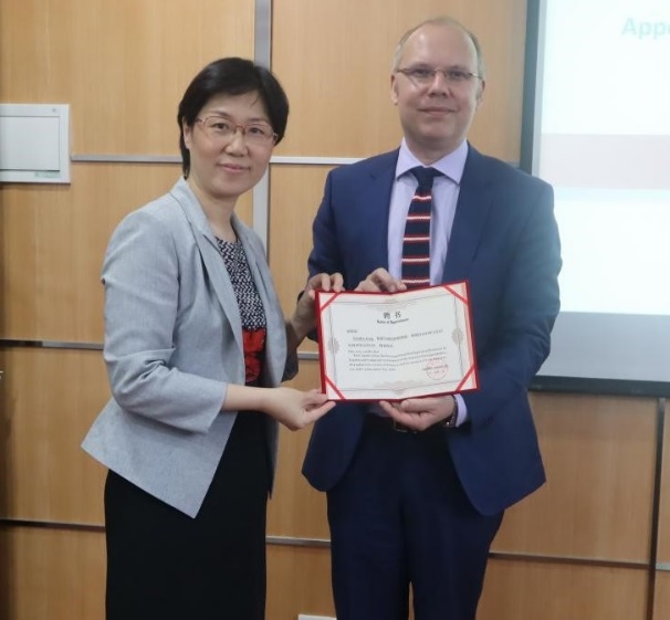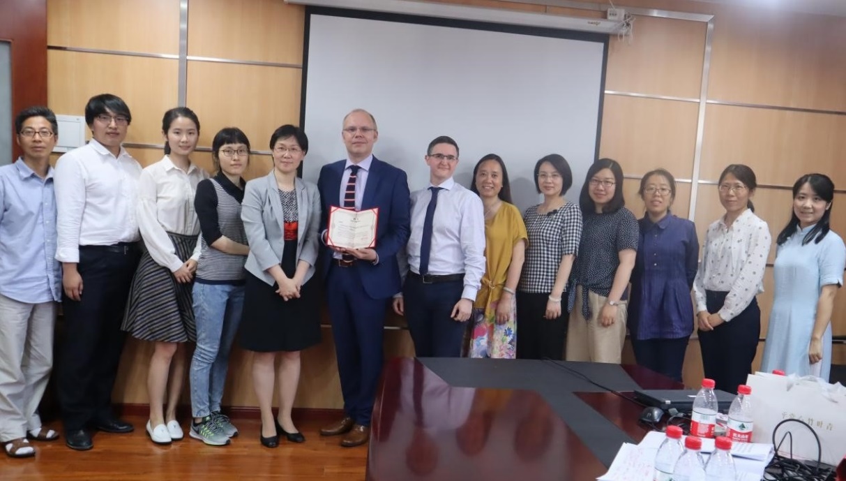 Sandro Jung教授最后一场讲座之后,我院为其举办了特聘教授聘任仪式。院长乔晓妹教授致辞,授予Sandro Jung教授特聘教授的聘书并代表学院为Sandro Jung教授和Russell Palmer博士赠送礼物。接着,我院谭琼琳教授总结了Jung教授在担任特聘教授半年以来的学术成就,感谢Jung教授和Palmer博士这两周以来与外院师生进行的交流互动以及参与论文修改等学术活动。随后学生代表发言,学院师生纷纷向Jung教授和Palmer博士两周以来的学术指导表示感谢,并赠送礼物。最后,与会师生合影留念,期待来年继续与Jung教授进行脑力激荡、学术探讨。