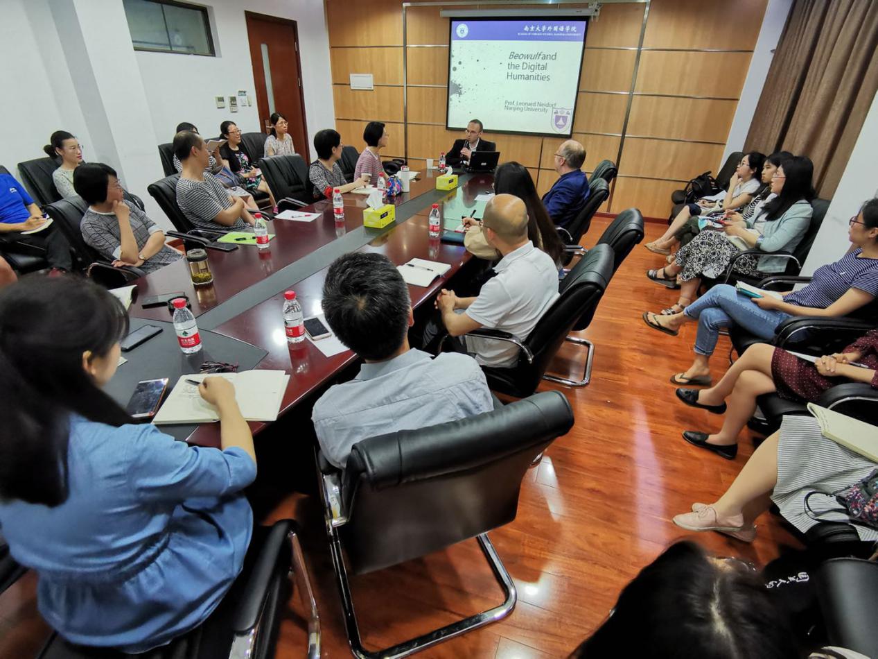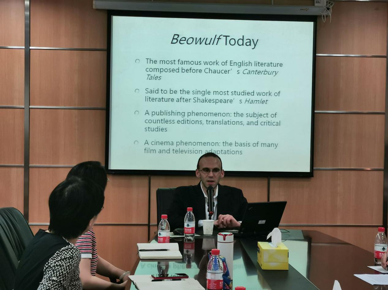 2019年6月上旬,我院开展了文学系列沙龙活动,邀请比利时根特大学英文系教授、学院特聘教授Sandro Jung,南京大学外国语学院教授Leonardo Neidorf以及ANQ助理编辑Russell Palmer博士,与学院师生进行了交流与互动。
