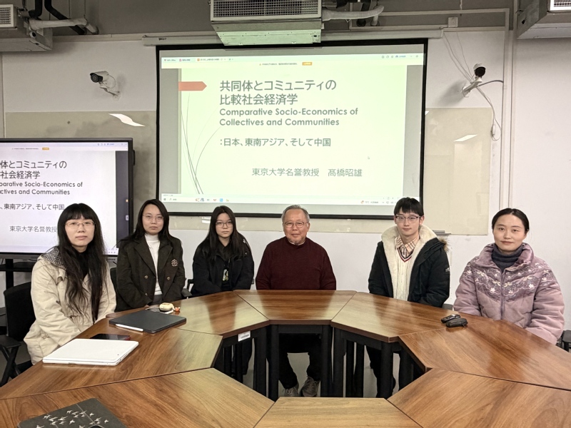 12月16日上午,东京大学名誉教授、东洋文库研究员高桥昭雄教授为日语学术硕士研究生《日本文化概论》课程举办题为“共同体与社区的比较社会经济学”的专题讲座。