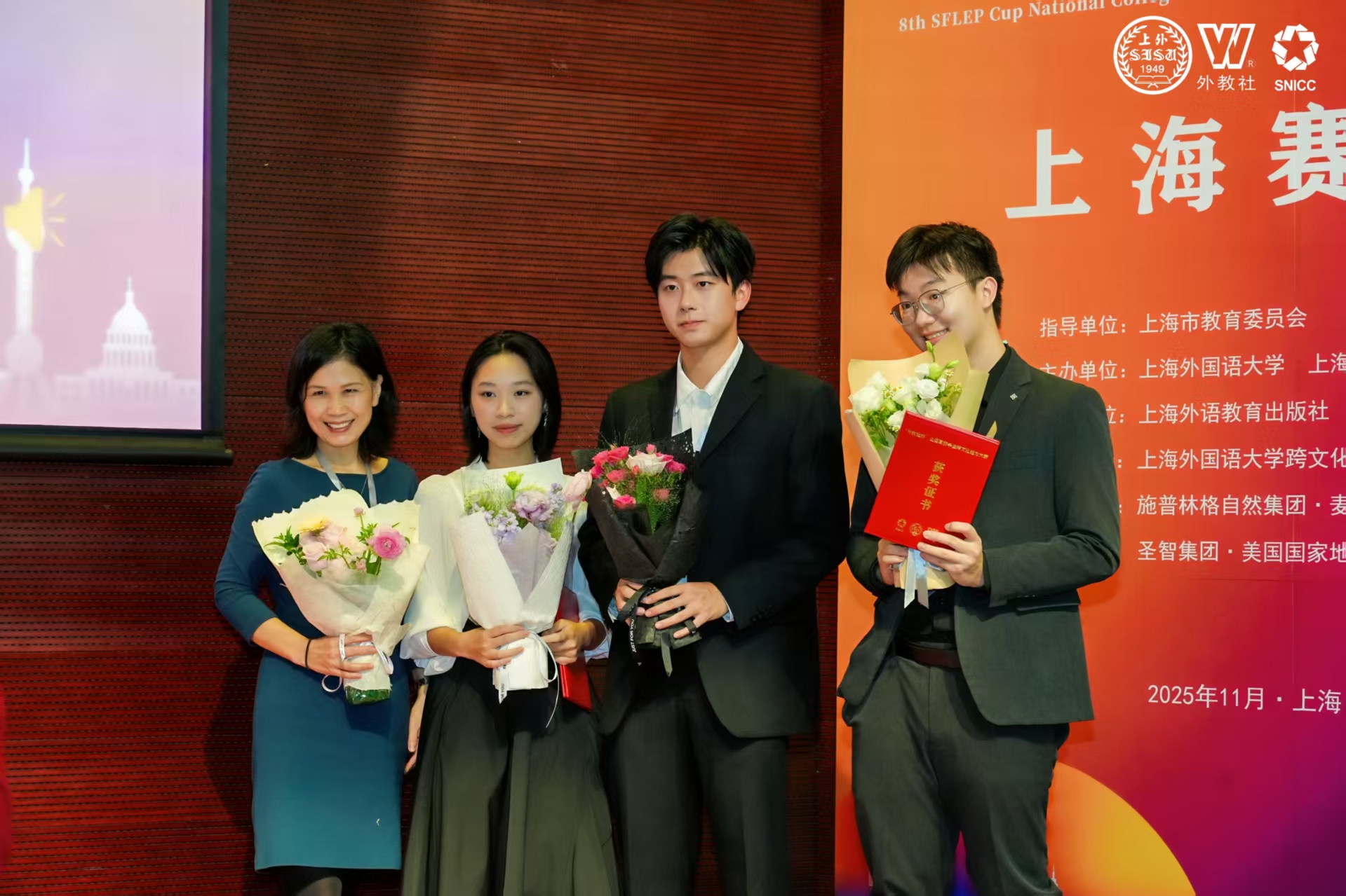 第八届“外教社杯”全国高校学生跨文化能力大赛上海赛和全国决赛总决赛,已于今年11、12月在上海顺利举行。本届赛事吸引了全国31个省、自治区、直辖市的1050余所高校,超过3000名选手踊跃参与,参赛规模为历届之最。该赛事自2016年创办以来已覆盖全国近30个省市自治区,始终坚持初心,以培养具有中国情怀、国际视野、专业本领、跨文化沟通能力的青年人才为目标,为高校学子提供展示才华、交流互鉴的优质平台,致力于推动我国跨文化教学与人才培养的高质量发展。上海财经大学参赛团队在本次大赛中表现优异,于上海赛区决赛斩获一等奖,并在全国总决赛中荣获二等奖及“团队最佳案例奖”。