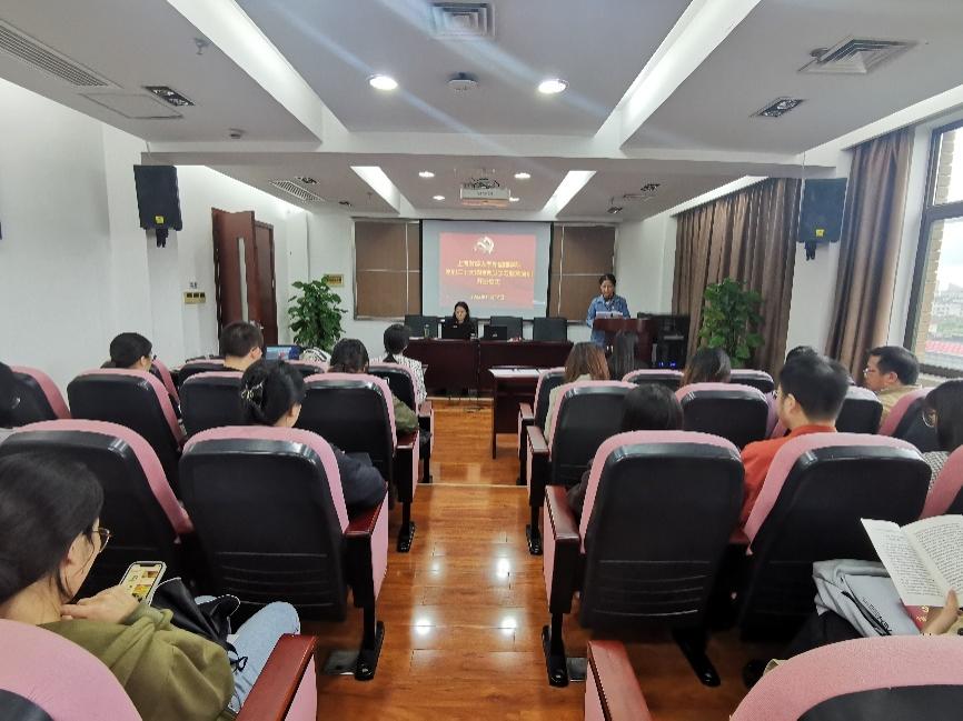 王莹珏老师首先传达学校党委关于基层党组织和广大党员深入学习党的二十大精神专题教育培训的要求,部署学院学习计划,强调做到规定动作不变形、自选动作有亮点,切实把全院师生员工的思想和行动统一到党的二十大精神上来,助力学校和学院高质量发展。