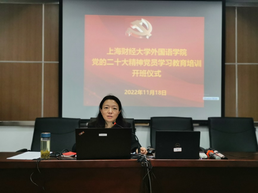为深入学习宣传贯彻党的二十大精神,11月18日下午,外国语学院党委举办学习贯彻党的二十大精神专题教育培训开班仪式。学院全体师生党员通过线上线下结合的方式参加本次开班仪式。仪式由学院组织员王莹珏主持。