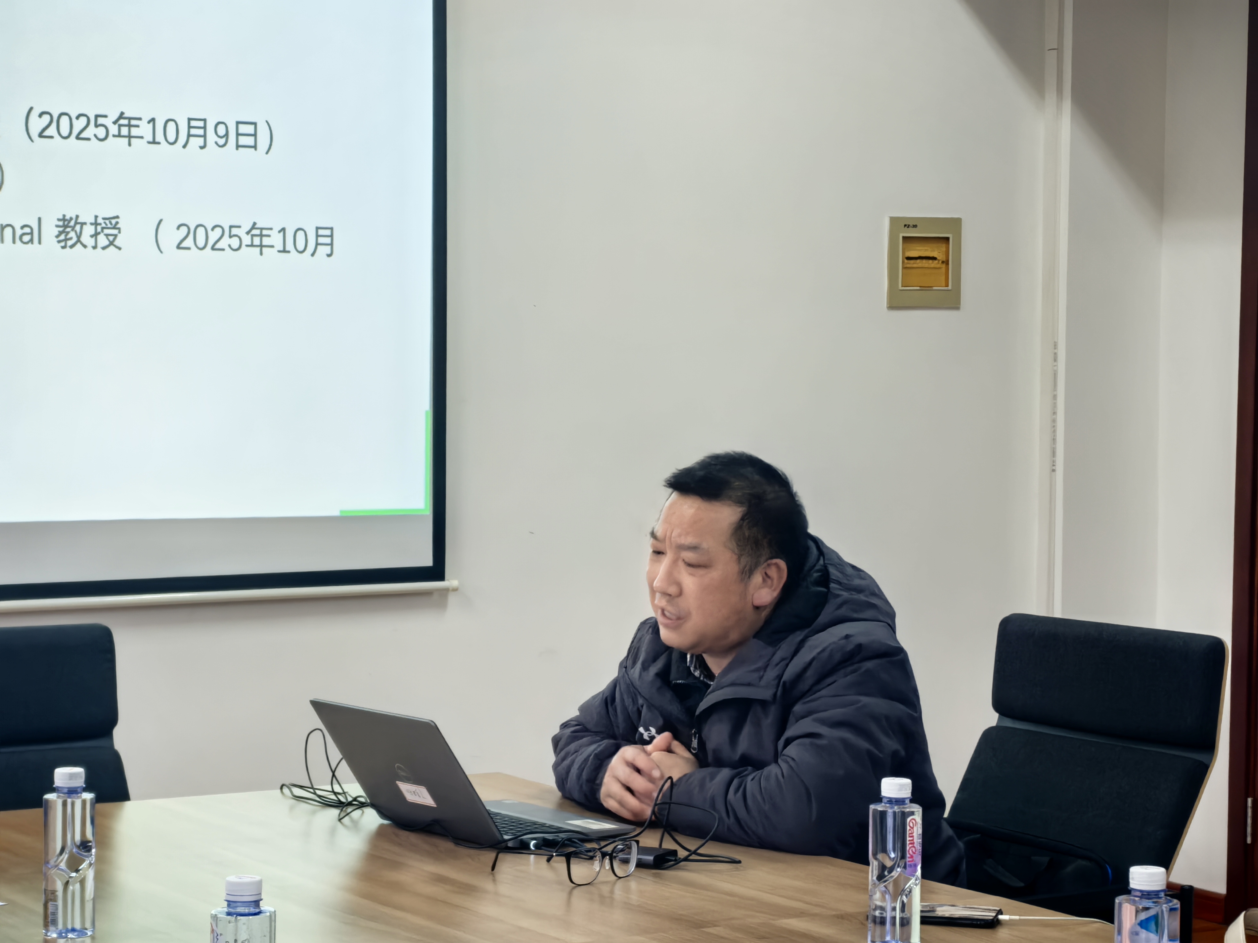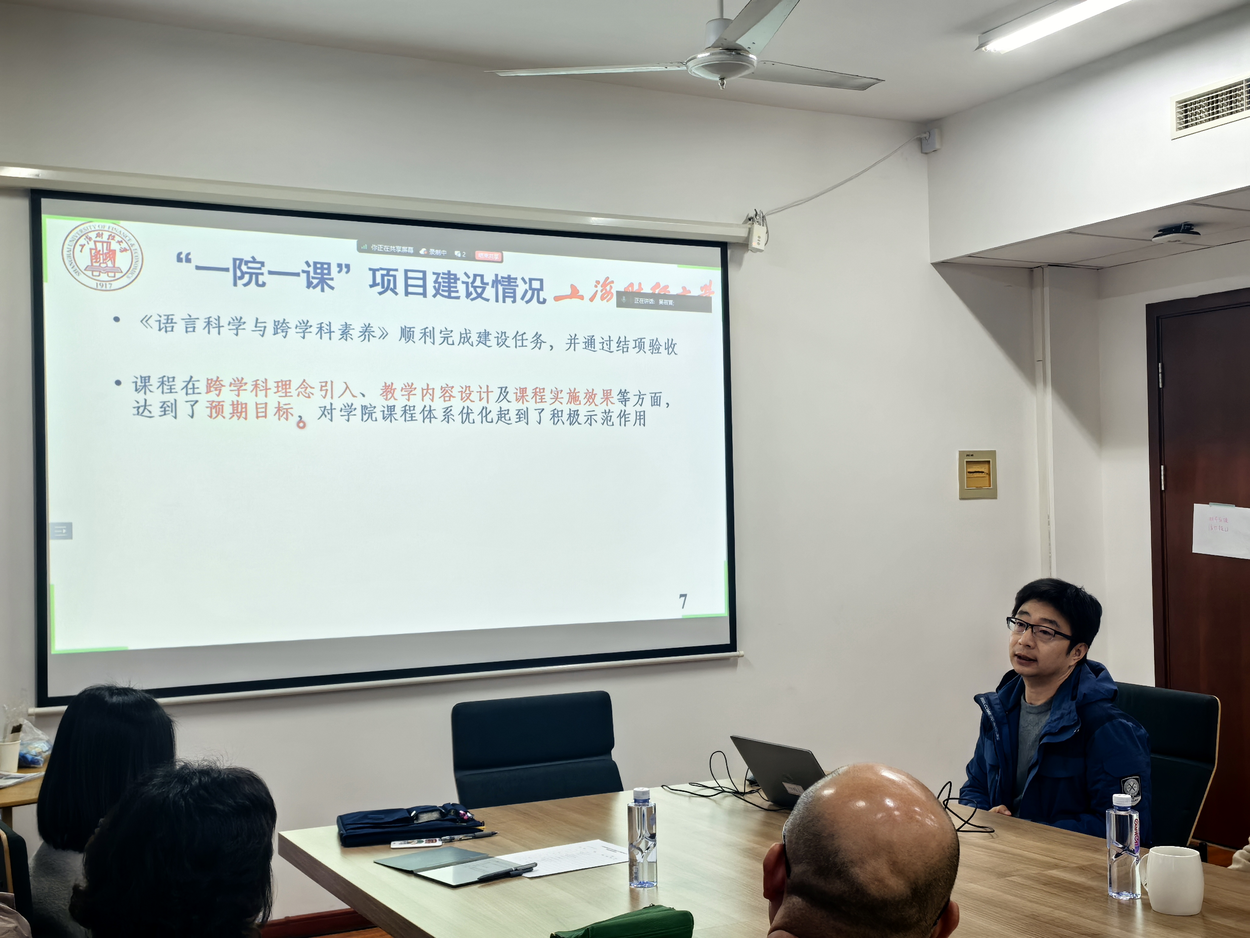 党沁然老师代表学院正在培育的通用外语教研室进行了汇报。教研室成员研究方向多元,涵盖语言学、文学、法语等领域。本年度工作以师生服务为中心:在人才培养方面,重点推进与法国里昂商学院的“3+2”英法复语实验班项目,正式签署合作备忘录及协议,并计划未来将项目影响力拓展至全校。通过精心组织的宣讲与答疑,成功选拔15名优秀学生进入英法复语实验班;组织AI技能培训,并策划开展AI创意工具工作坊,以技术赋能教学。