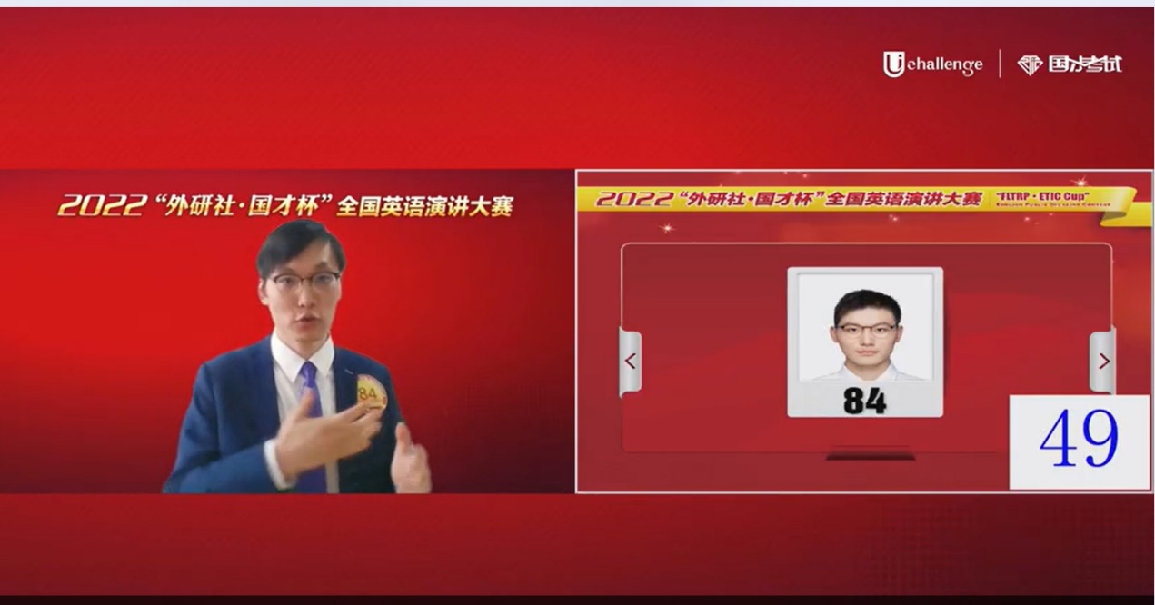 赛事全国总决赛于12月7日开启。地面赛场晋级的93名选手与网络赛场晋级的90名选手相聚云端,共同角逐。今年的赛题是“China’s Wisdom for the World: My Role in Building a Community of Shared Future for Mankind”,旨在激励青年学子勇担时代之责、凭文化自信弘扬中国主张,以中国智慧诠释发展道路,展现中国青年对人类发展前景的思考和担当。经过多次头脑风暴,李嘉骥同学和丁冬老师最终决定结合经济学专业知识,讲述中国在知识供给侧改革方面所取得的成就。讲稿指出,信息技术和沟通模式的巨变正给知识供给带来翻天覆地的变化,为回应人们对知识更加复杂和多元化的需求,我国建设数字图书馆、发展慕课平台等举措均是知识供给端的实践探索。此外,中国致力于推动全球范围的知识共享。比如:中国研究团队率先向世卫组织分享新冠病毒的全基因组序列,以支持全球新冠病毒研究;搭建了一个融合学术机构、企业和NGO的大型智库,为全球环境问题寻找新的解决方案。最后,呼吁大家保持学习热情,提升视野,重塑知识创造、分享和传播的方式为建立一个人人都能通过掌握知识而有所作为的学习型社会做贡献。