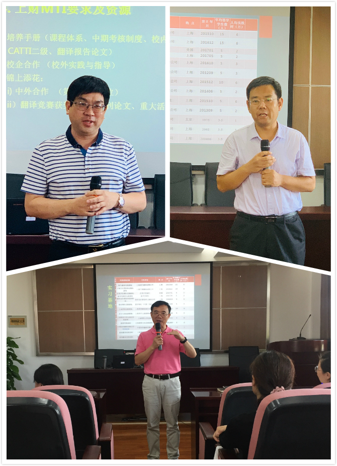 专业学位专场由周晓梅教授和张达球副教授主持。首先,周晓梅老师对学院翻译学研究方向进行了重点介绍。随后,MTI教育中心主任张达球老师以《MTI四问》为题就上财MTI办学特色、学生培养方向、MTI就业情况、翻译行业信息技术化等进行了详细的介绍。同时,张老师寄语全体同学,对首届MTI学生提出了未来两年的学习要求,激励学生博学笃实,为学术研究道路打下坚实的理论与实践基础,期望学生成为卓越的语言服务管理人才。
