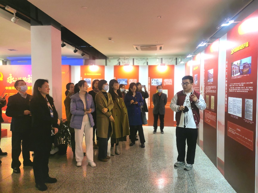 随后,在师生党员主题党日活动中,学院全体师生党员共同参观了“永远的旗帜——中国共产党党章学习流动教室”展览,学习党章百年发展历程,踔厉奋进新征程。