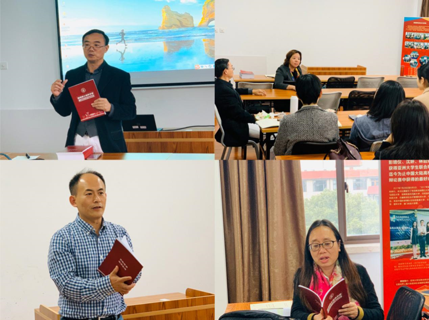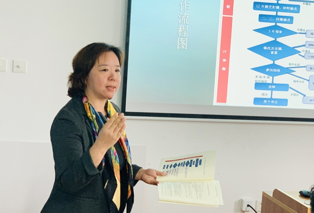 培训会议后,MTI教育中心主任张达球副教授组织MTI专业导师进行指导工作座谈会。张老师向导师们介绍了贯穿MTI培养全过程所使用的《翻译硕士培养手册》,内容涵盖学生的读书报告、校内外翻译实践等培养过程记录。在座谈环节中,郭鸿杰教授和谭琼琳教授分别分享了指导MTI硕士生的经验和感想,就导师们关心的笔译实践任务的布置和指导问题支招,同时也提出要坚定信念,帮助研究生建立自信,从而更好的成长成才。